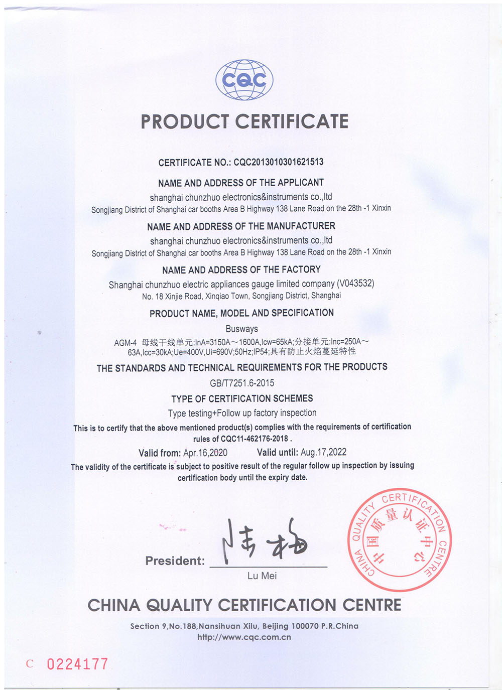 密集型母線槽(母線槽)CQC證書